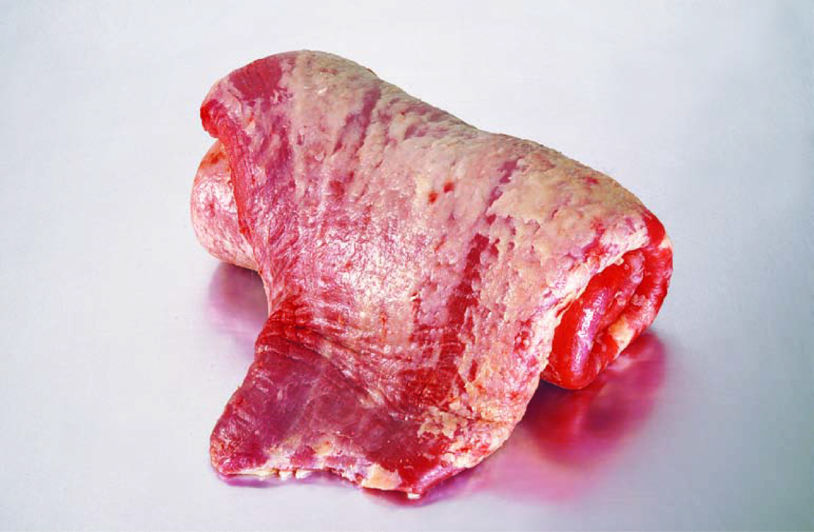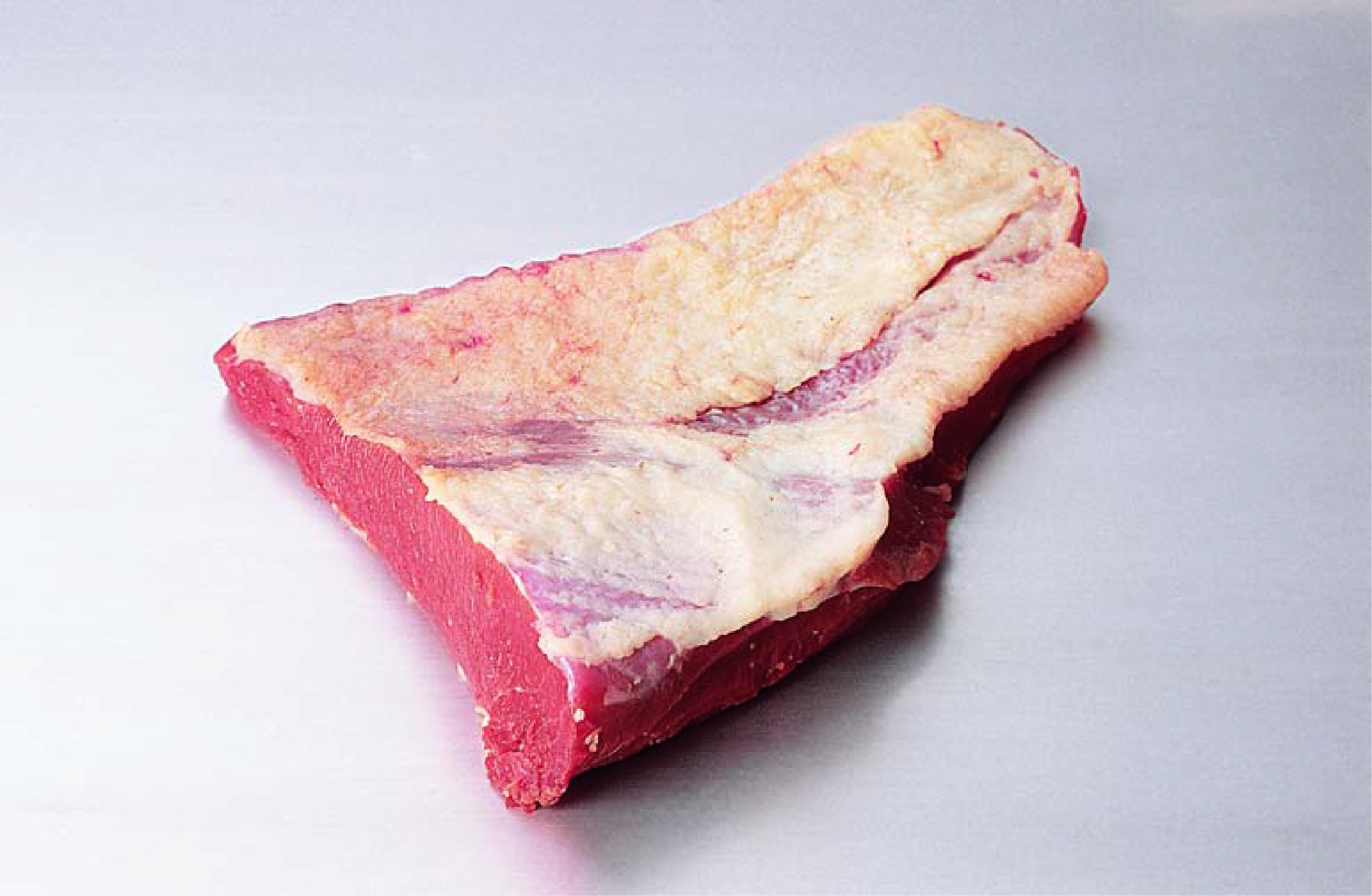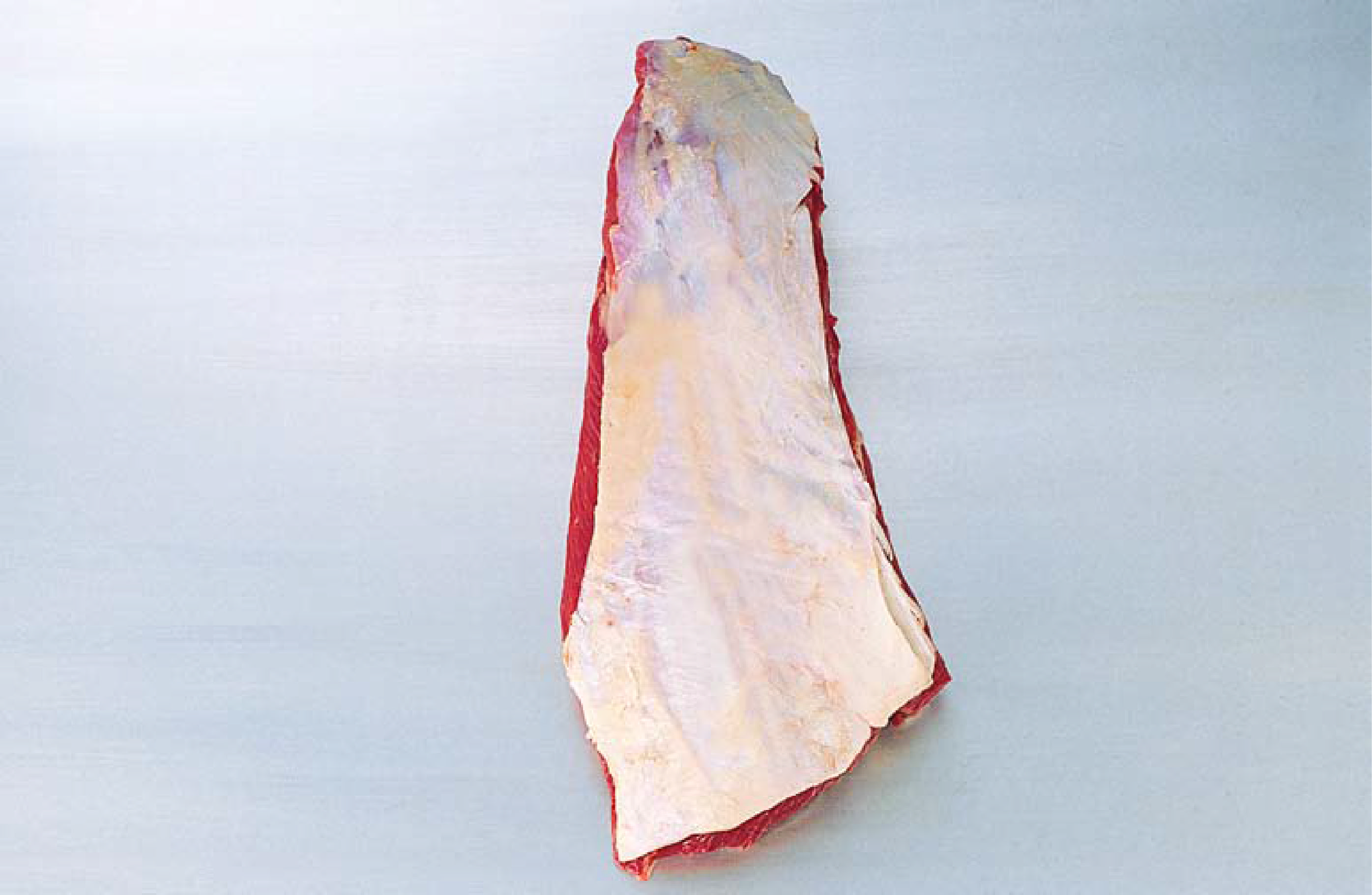A partir de un pecho a 10 costillas (ítem 2312) se separan los músculos intercostales, serrato torácico ventral y pectoral superficial. Los depósitos grasos subyacentes a dichos músculos son eliminados, hasta que aparezca la superficie del m. pectoral profundo libre de grasa.